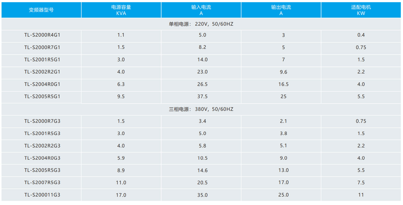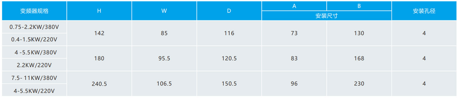 功率范圍:0.75-11KW