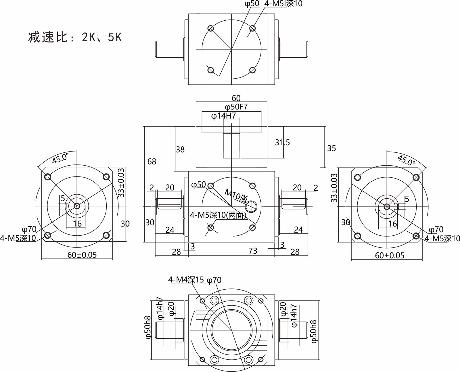 精密直角轉(zhuǎn)向器雙實(shí)心出軸型