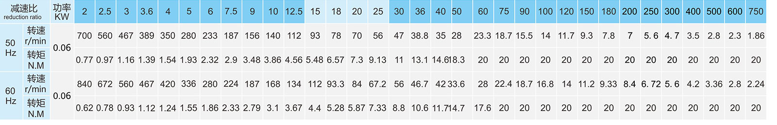 轉(zhuǎn)速是以電動機的異步轉(zhuǎn)速(50Hz:1400r/min、60Hz:1680r/min)為基準(zhǔn)除以減速比而算 出來的數(shù)值。實際轉(zhuǎn)速將隨負載大小變化而有所變化。