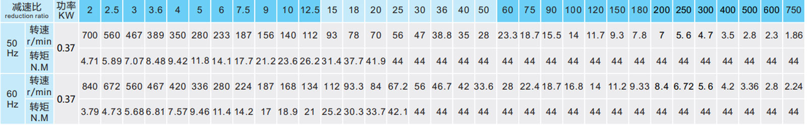 轉(zhuǎn)速是以電動(dòng)機(jī)的異步轉(zhuǎn)速(50Hz:1400r/min、60Hz:1680r/min)為基準(zhǔn)除以減速比而算 出來(lái)的數(shù)值。實(shí)際轉(zhuǎn)速將隨負(fù)載大小變化而有所變化。