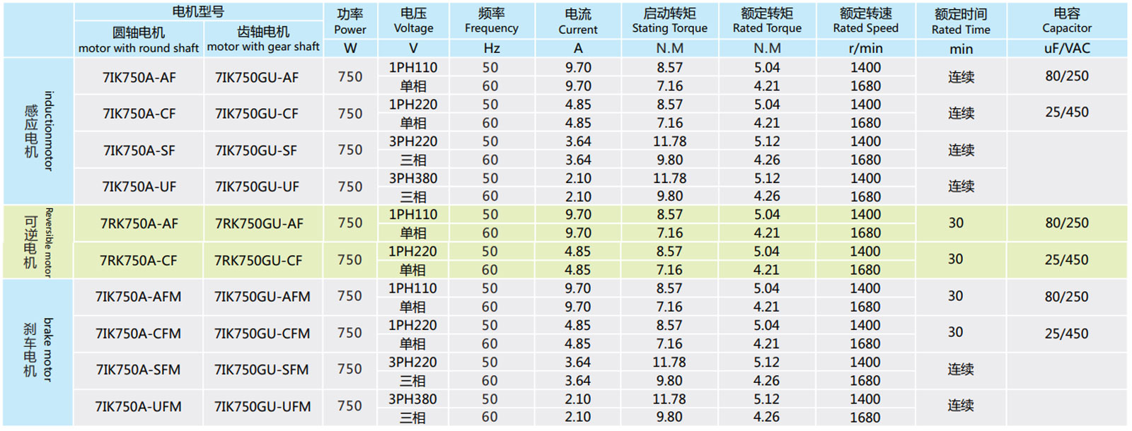 ▲ 注意:使用電壓和機(jī)型不同,電容容量不一樣,訂貨時(shí)請務(wù)必指明具體的型號。