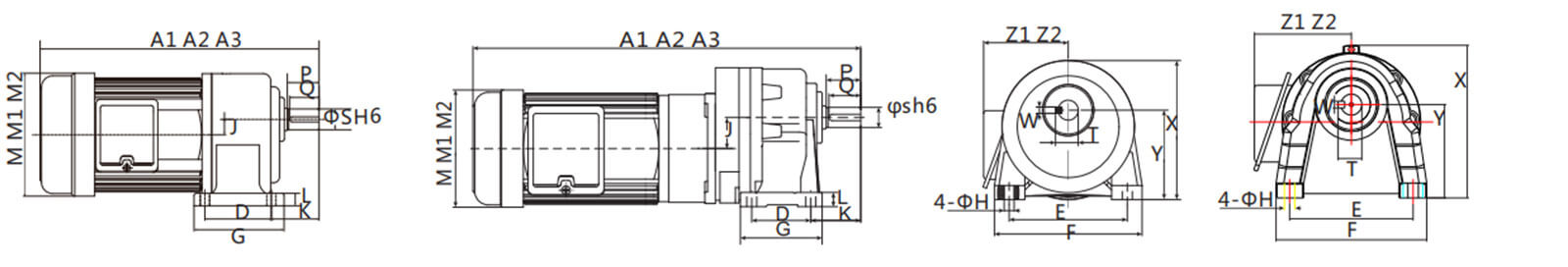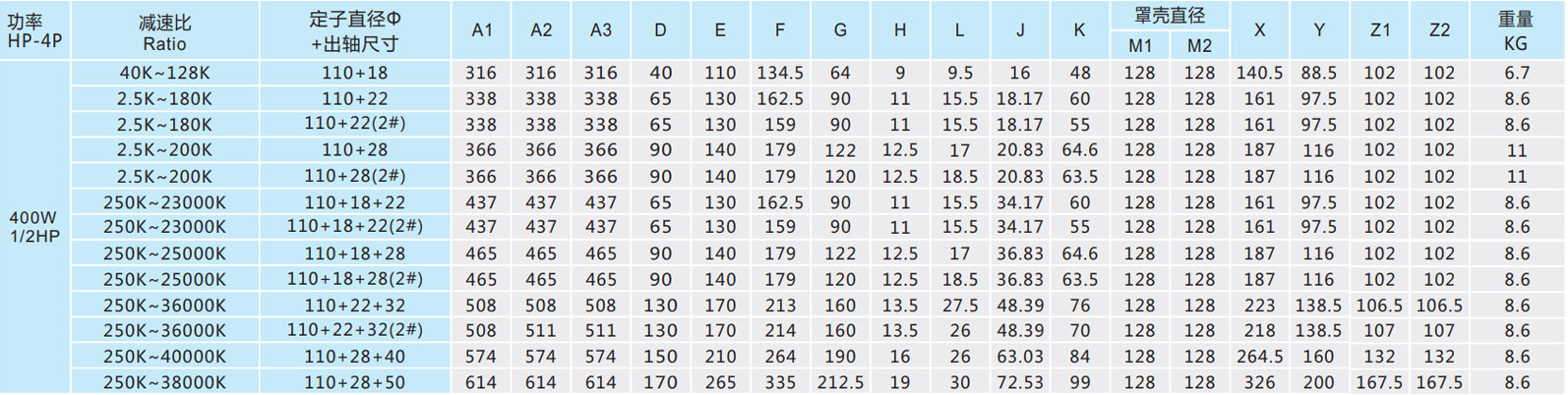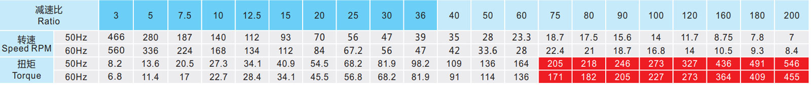 ▲ 表列轉(zhuǎn)速是基于電機異步轉(zhuǎn)速(50Hz:1400r/min、60Hz:1680r/min),額定負載時,實際轉(zhuǎn)速為表列轉(zhuǎn)速的80%-98%。