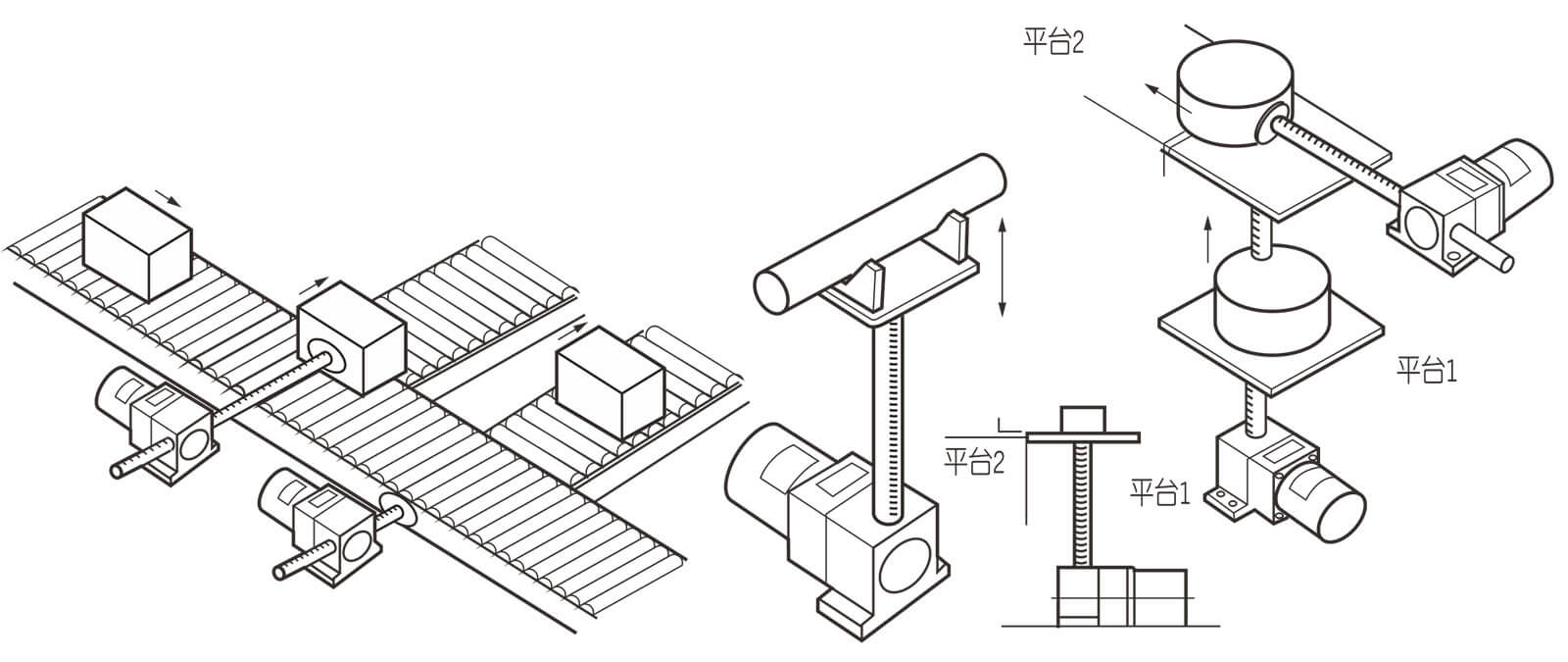 實現(xiàn)直動機(jī)構(gòu) 直線減速機(jī)配合合適的電機(jī),可輕松實現(xiàn)在水平方向或垂直方向的直線移動。