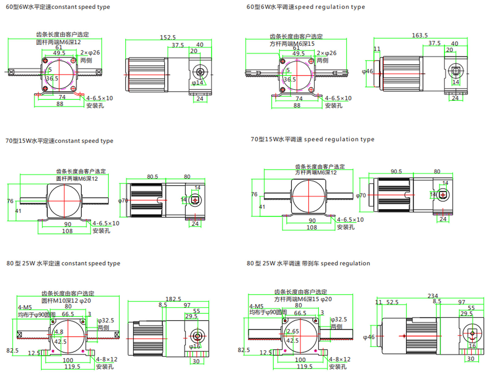 該種類型的直線減速器能與多種類的電機(jī)組合使用,實現(xiàn)直線運動。同時,行程移動速度和行程也有多種規(guī)格,可輕松實現(xiàn)需要的推、拉、升、降等用途。