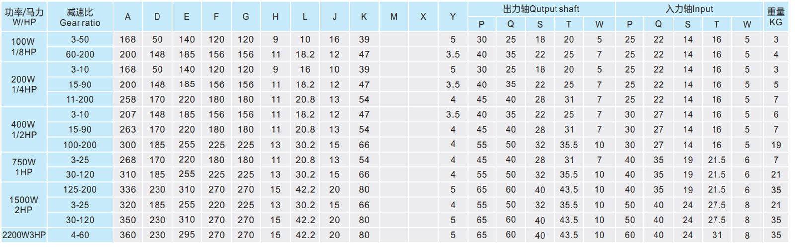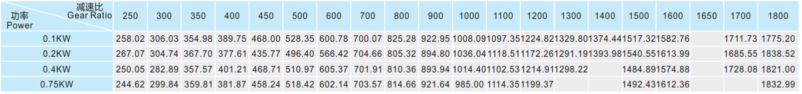 ▲ 表列轉(zhuǎn)速是基于電機(jī)異步轉(zhuǎn)速(50Hz:1400r/min、60Hz:1680r/min),額定負(fù)載時,實(shí)際轉(zhuǎn)速為表列轉(zhuǎn)速的80%-98%。